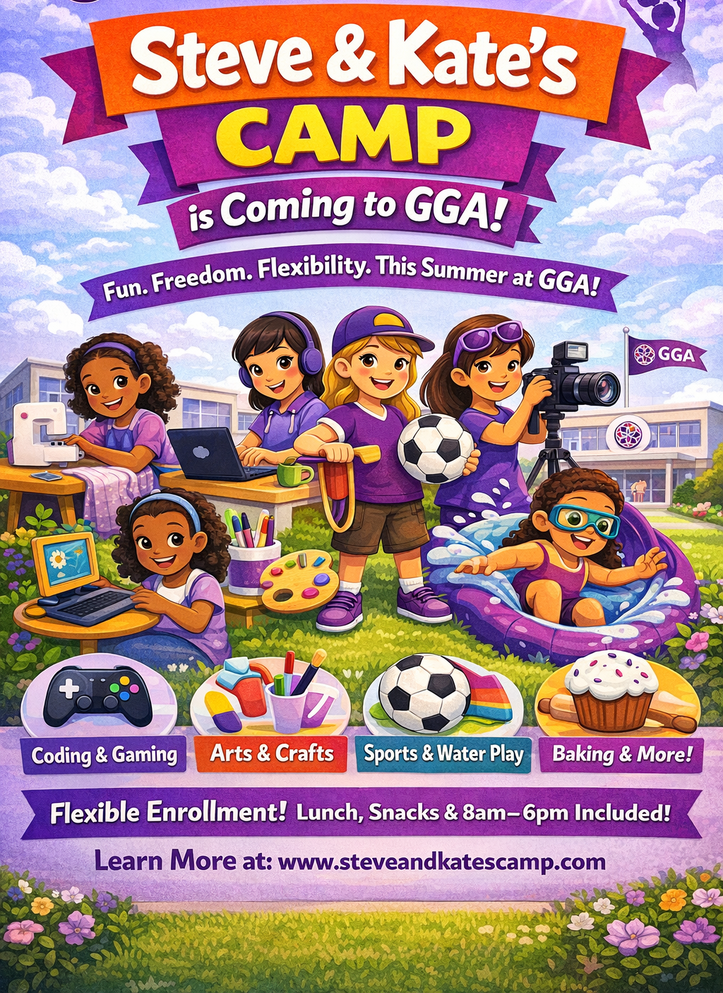 We’re excited to announce that Steve & Kate’s Camp is coming to our campus this summer! Since 1980, Steve & Kate’s Camp has put kids in charge of their own learning experience–allowing campers to choose from a variety of activities in real-time. Activities include sewing, stop-motion animation, coding & gaming, sports & recreation, maker crafts, water play, baking, and more. And there’s plenty of perks for adults too. Families can attend for a day, the entire summer, or anything in between. There’s no weekly sessions or reservations required. Plus–they’ll automatically refund any unused Passes at the end of the summer. Lunch, snacks, and all hours (8am–6pm) are included. Want to learn more? Check out their website!